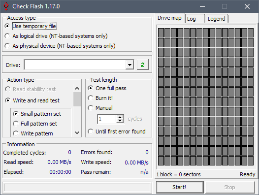 За допомогою безкоштовної комп'ютерної програми Check Flash можна перевірити найрізноманітніші функції підключених пристроїв. Ви можете визначити швидкість читання і запису, провести сканування поверхні накопичувача або ж стерти інформацію з усього носія або з якихось певних його частин.