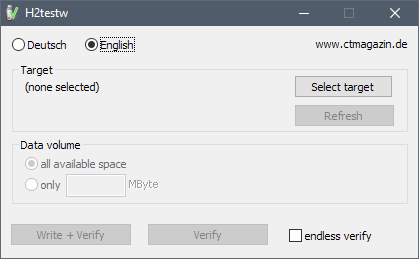 H2testw - це портативна програма, яка проводить перевірку всієї доступної ємності або тих ділянок накопичувача, які вказав користувач. Для цього вона заповнює весь доступний обсяг тестованого диска інформацією, після чого зчитує отримані дані і надає їх користувачеві.