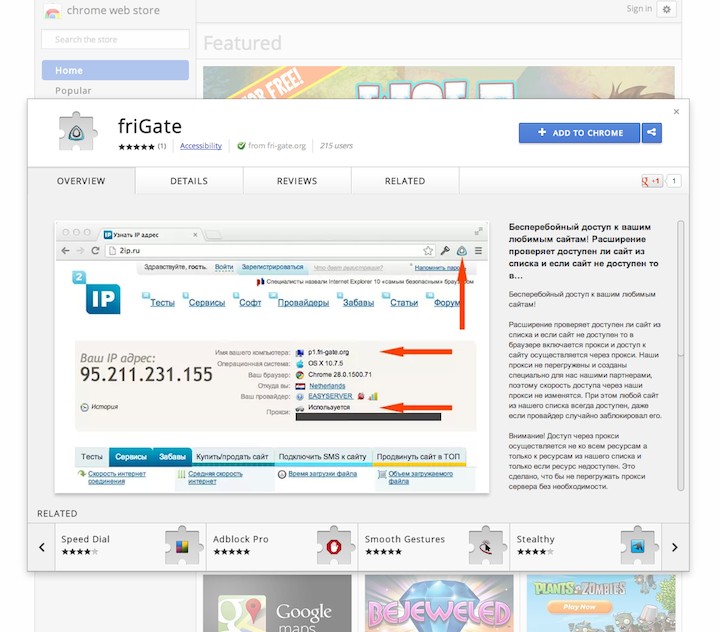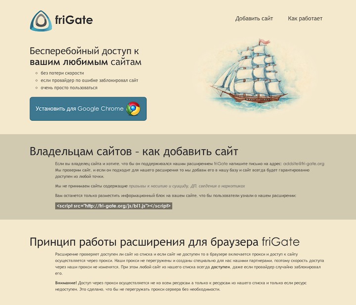 плагін friGate для браузера Chrome, по всій видимості, написаний російськими програмістами: і його веб-сайт, і опис в Chrome Web Store доступні тільки російською мовою.