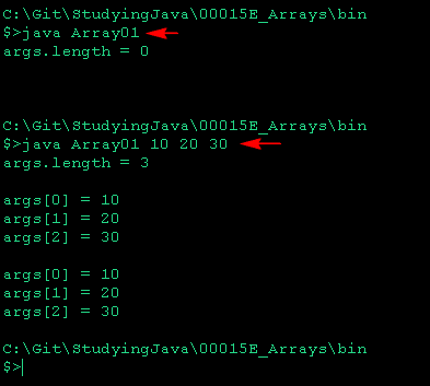 У другому випадку ми передали аргументи в командному рядку і отже масив був оброблений в циклах.