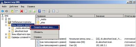 - Створюємо додаткову зону alexxhost. ru на локальному DNS-сервері.